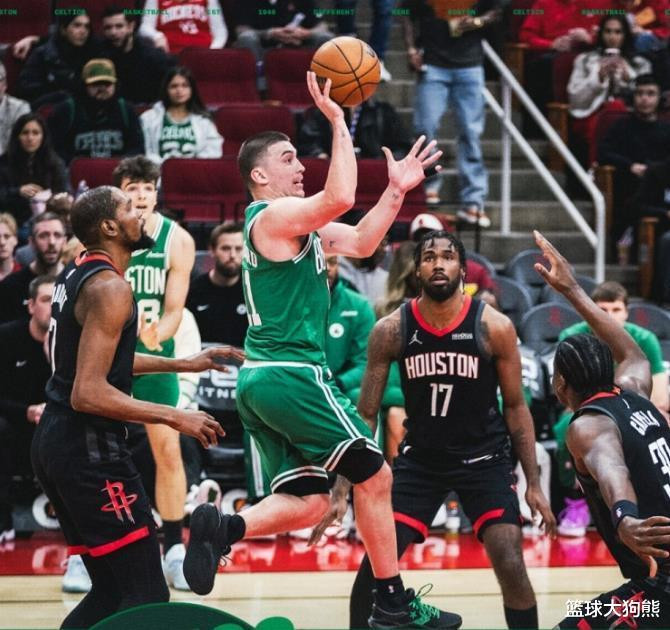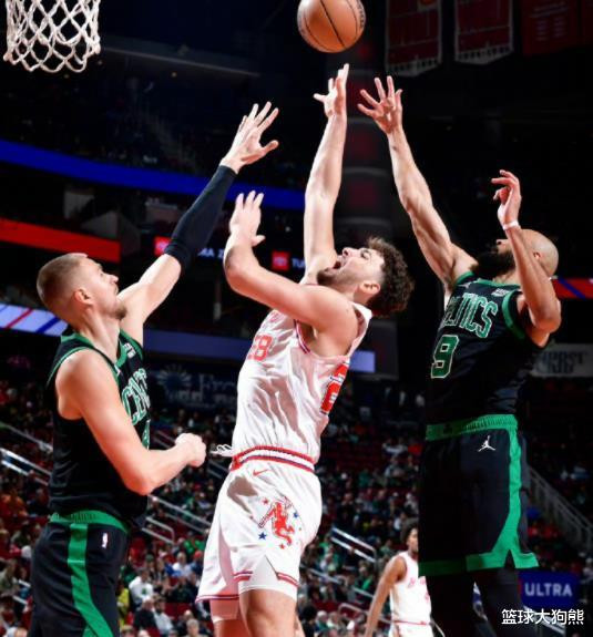 而凯尔特人队的科塔一个人就摘下了19个篮板。全场比赛,凯尔特人队一共摘下了57个篮板,其中有20个前场篮板、37个后场篮板,这里外里比火箭队多了很多二次进攻的机会。就算火箭队本场比赛三分球命中率达到36%,但他们最终还是因为篮板不如对手而输球,还是大比分失利——火箭队全场一共输掉了21分,这在以往是很难得一见的事情。